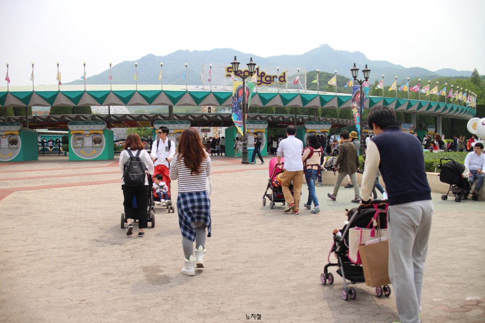 코끼리 열차를 타기엔 유모차들을 가지고와서 산책을 하며 걸어서 서울랜드 입구에 도착합니다