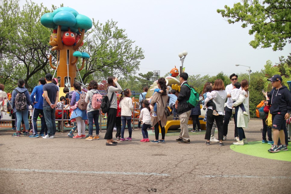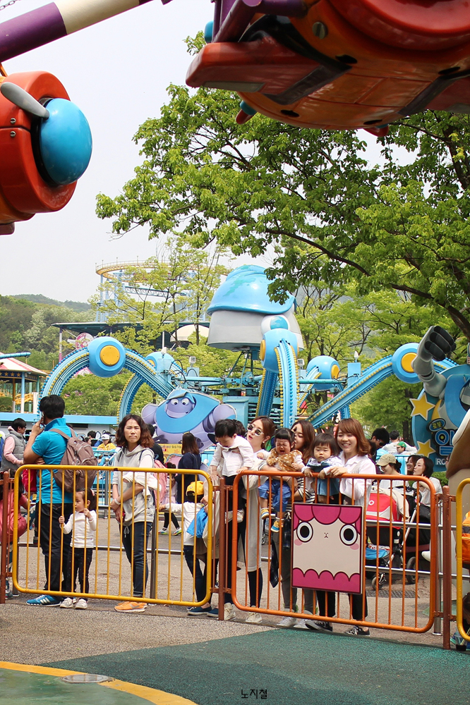 물론 예상은 충분히 했었지만 놀이기구 하나를 타기위해서 어마어마하게 줄을 서야 됐습니다 엄마들이 줄을 서는 동안 아이들은 아빠들이 봐줍니다
