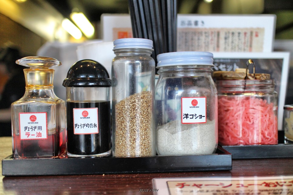 왼쪽 둘은 만두소스 가운데느 깨 그 옆에는 후추소금 그리고 제가 못 먹는 또 한가지 생강절임 처음 온 돈코츠 라면집에서 언제나 드는 생각은 얼마나 느끼할까.. 과연 입맛에 맞을까?입니다