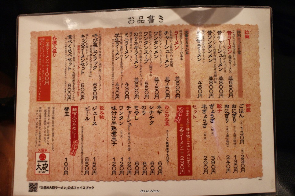 상호는 "쿠루메 타이호 라면" 입니다 그리고 본점입니다