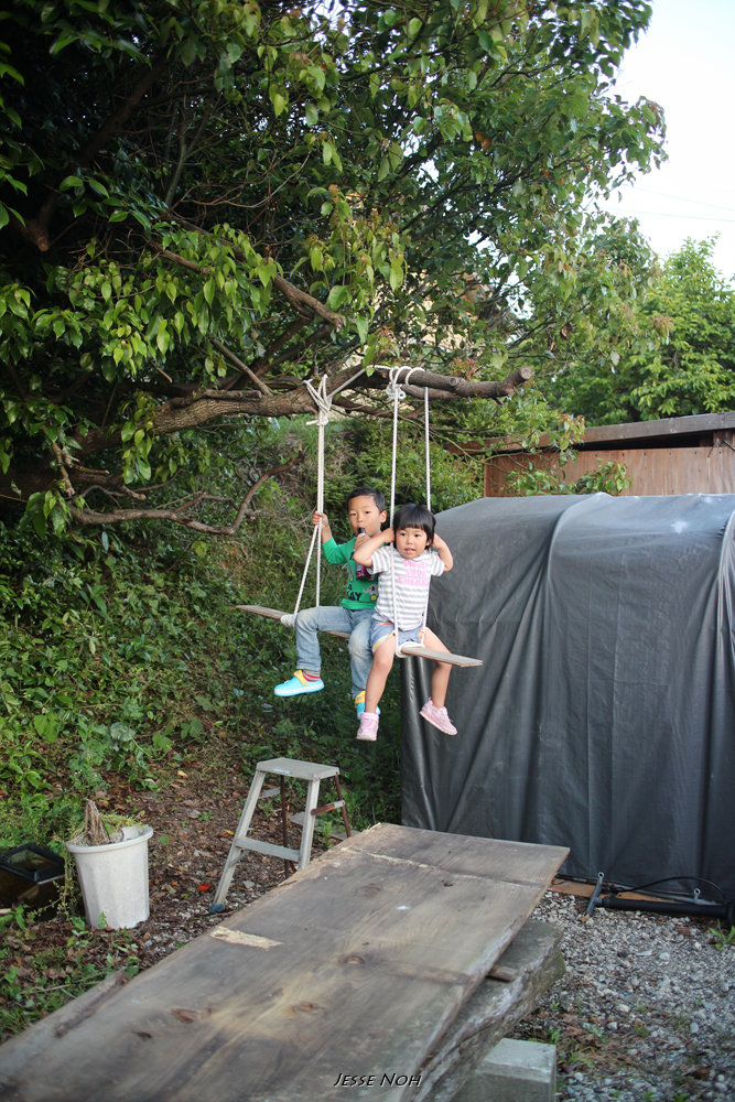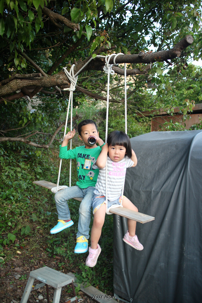 아이들은 마당에서 즐겁게 놀고 (큰언니 아이가 셋)