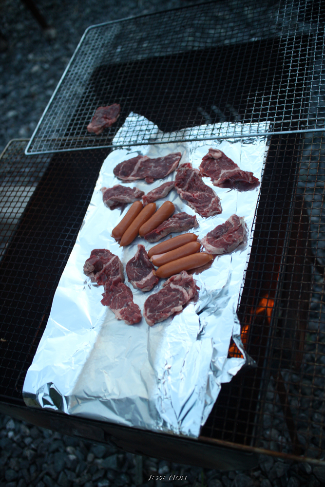 이렇게 호일을 이용해서 구워 먹게 됐는데 그 이유로 고기는 제가 다 구워야만 했었습니다