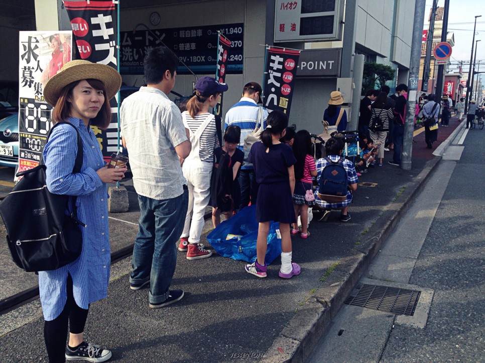엄청나게 긴 줄이 있습니다 9시 정각 문이 열립니다