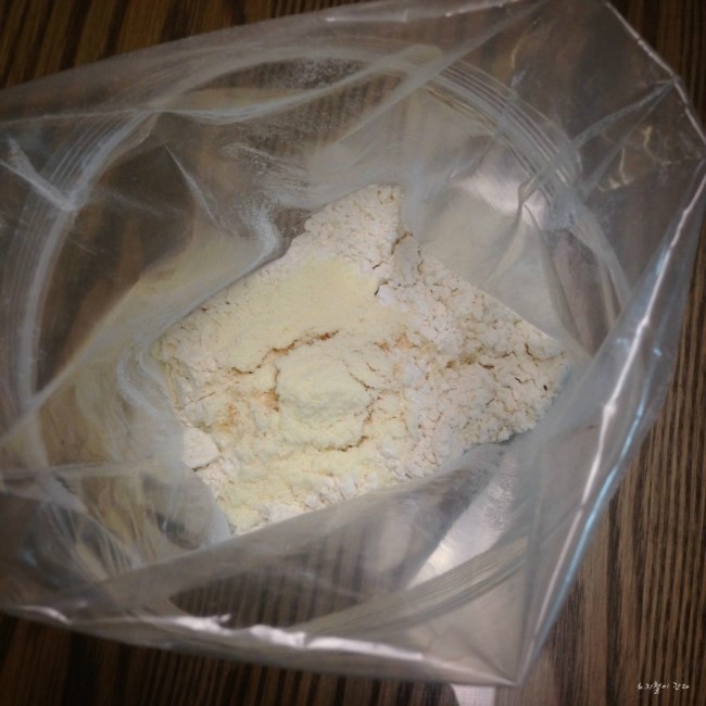 ![]() 베이킹파우더 + 유기농 밀가루 + 분유를 섞어서