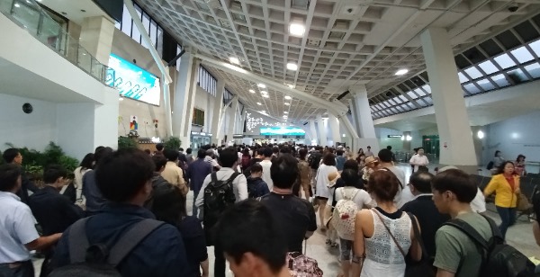 6:20분 티켓을 끊고 출발층으로 올라가니 티켓을 확인하는 줄에 수백명이 줄 서 있음 -0-