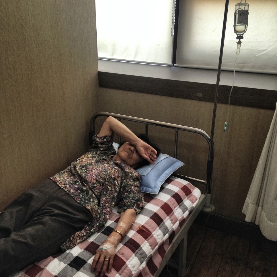 이런 모습으로 상태가 많이 안좋아보이십니다 솔직히 이대로 나뒀다가는 돌아가실 것 같아서 장인어른께 말씀드립니다 "좀 많이 아파보이시는데 병원을 찾아서 진찰을 받아봐야 할 것 같습니다" 모두가 회의를 시작합니다 속닥속닥 통역통역 결론은 주변을 검색하고 식당 사장님께 여쭤봐서 가까운 내과에 방문하기로 했습니다 전화로 확인하여 영양제 또는 포도당을 맞을 수 있는지 여부도 물어봅니다 할머니께서 링거를 맞으시는 동안 모두 그 옆을 지켜야 하는 것인지 그 문제가 발생합니다 제 어머니가 "내가 옆에서 지킬테니 여러분들은 주변 관광을 하고 오세요!!" 라고 하십니다 모두 "에이~ 그건 아니지요~" 라고 했지만 그 외에 더 좋은 방법이 떠오르질 않아 그렇게 하기로 합니다 어머니 감사합니다 그렇게 내과로 이동합니다