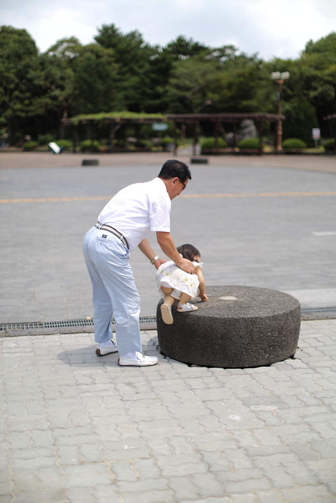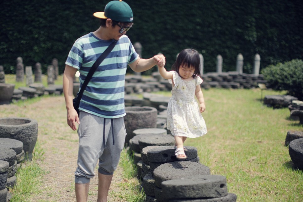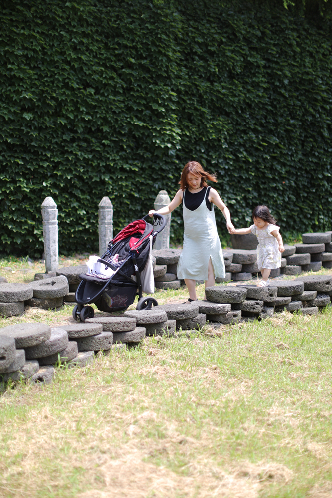 엄마 아빠가 교대로 손을 잡아주며 현무암 맺돌의 벽 위를 전부 걷고 말았습니다