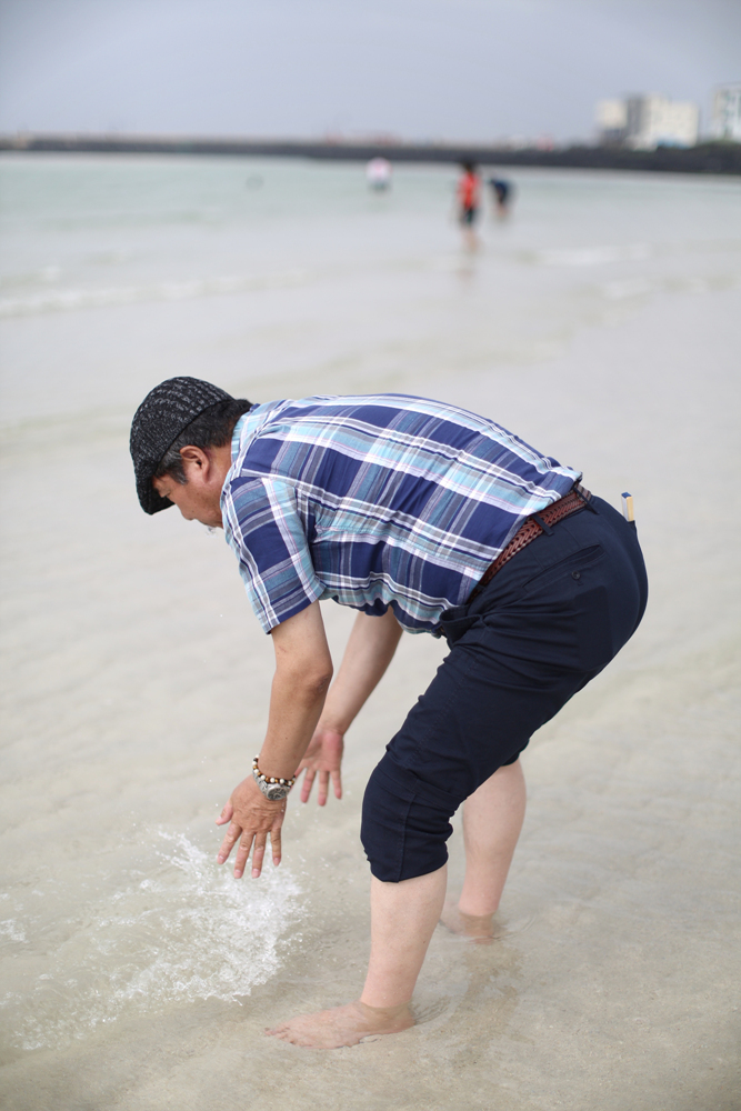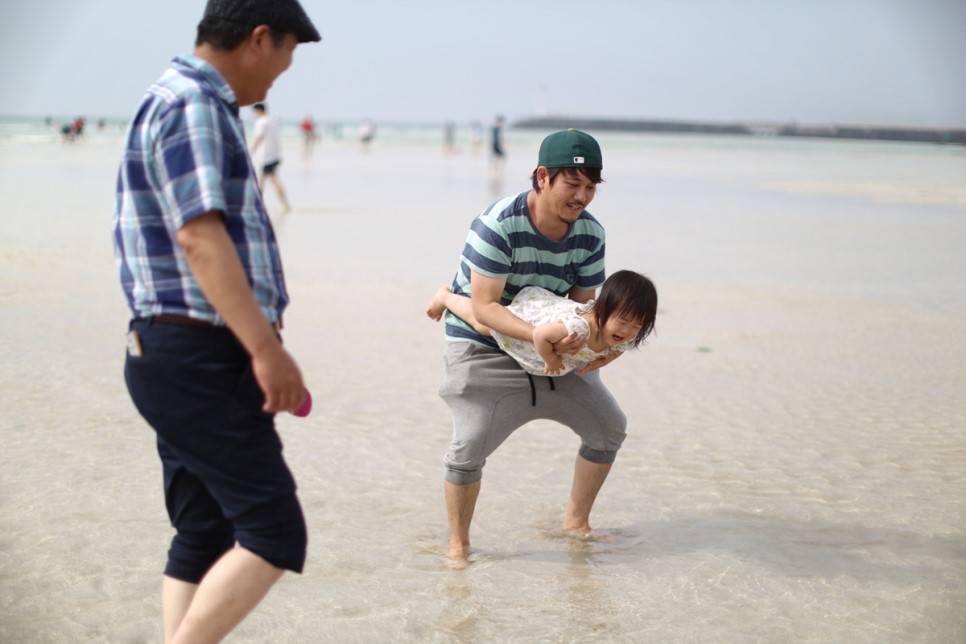 장인어른께서 맛을 보십니다 이거 민물이네 수돗물인가? 협재해수욕장에 수돗물로 아이들이 놀 수 있는 수심이 얕은 공간을 일부러 만든 것인가 라는 생각이 듭니다