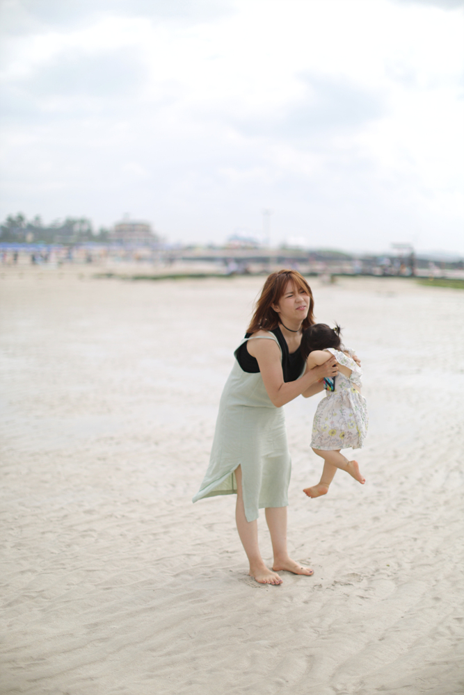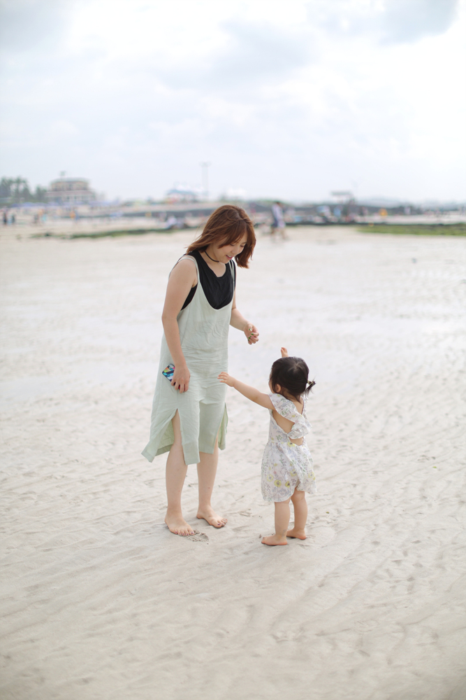 해수욕장은 정말 좋은데 란이는 정말 힘들다..