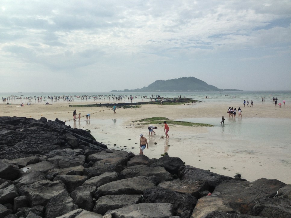 물이 솟아나는 곳이 여러곳 있었던 협재해수욕장