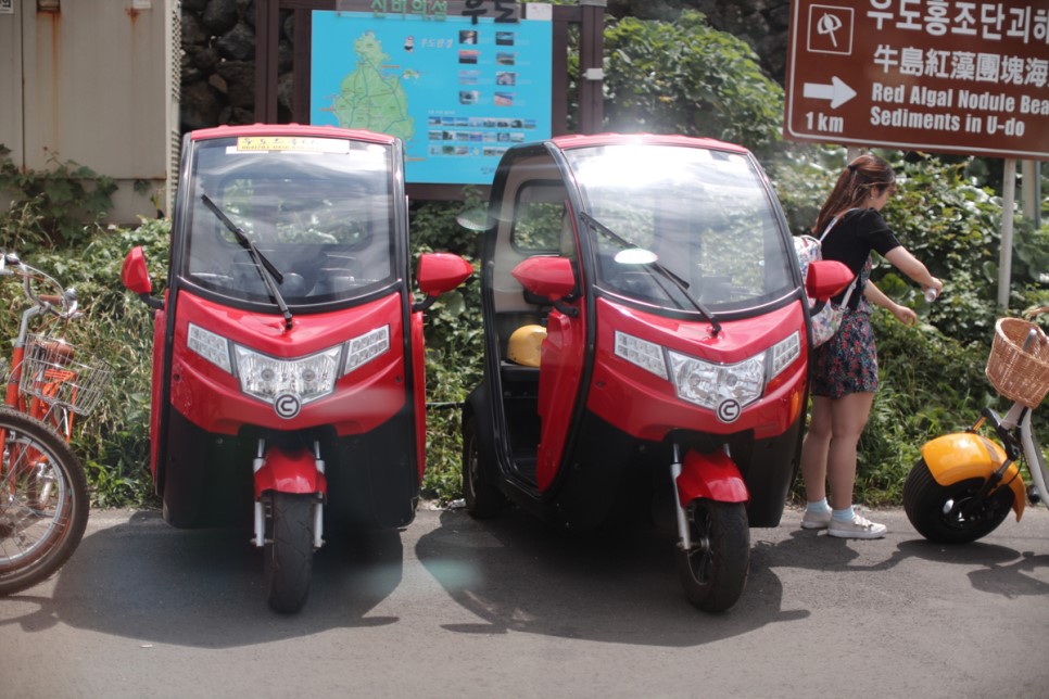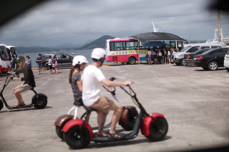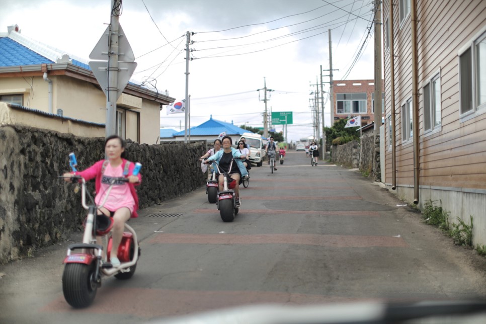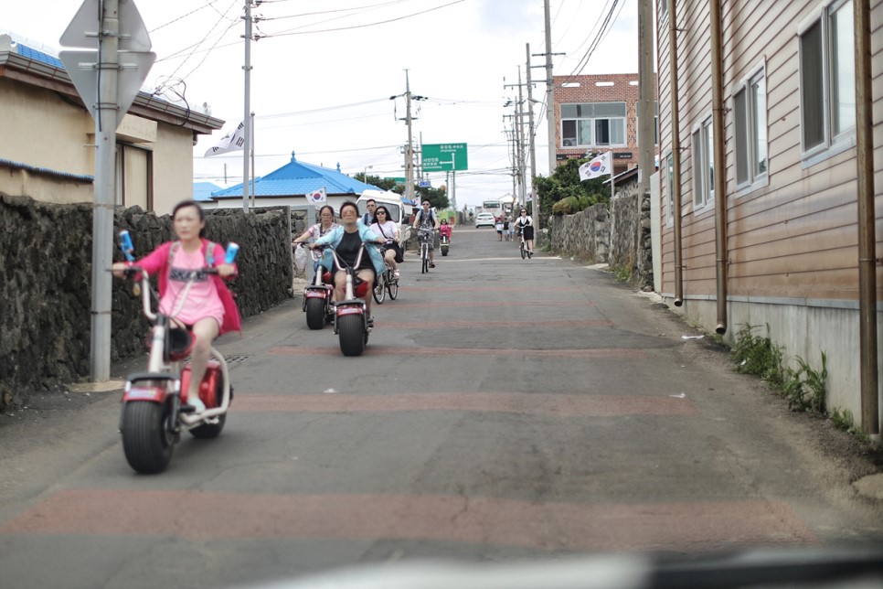 이런 폭주족을 만나 사고가 날 확율이 커 보였다는 겁니다 ^^: 자세히 보시면 중국 관광객들입니다 우도에도 그렇고 제주에서도 80%이상이 중국관광객으로 보였습니다 저희는 차로 조심해서 이동하다가 좀 아름다운 풍경이 있으면 차를 세웠습니다만 자전거나 전기바이크였다면 구석구석 더 잘 볼 수 있고 사진찍기도 좋겠다는 생각이 들긴 했습니다 ^^
