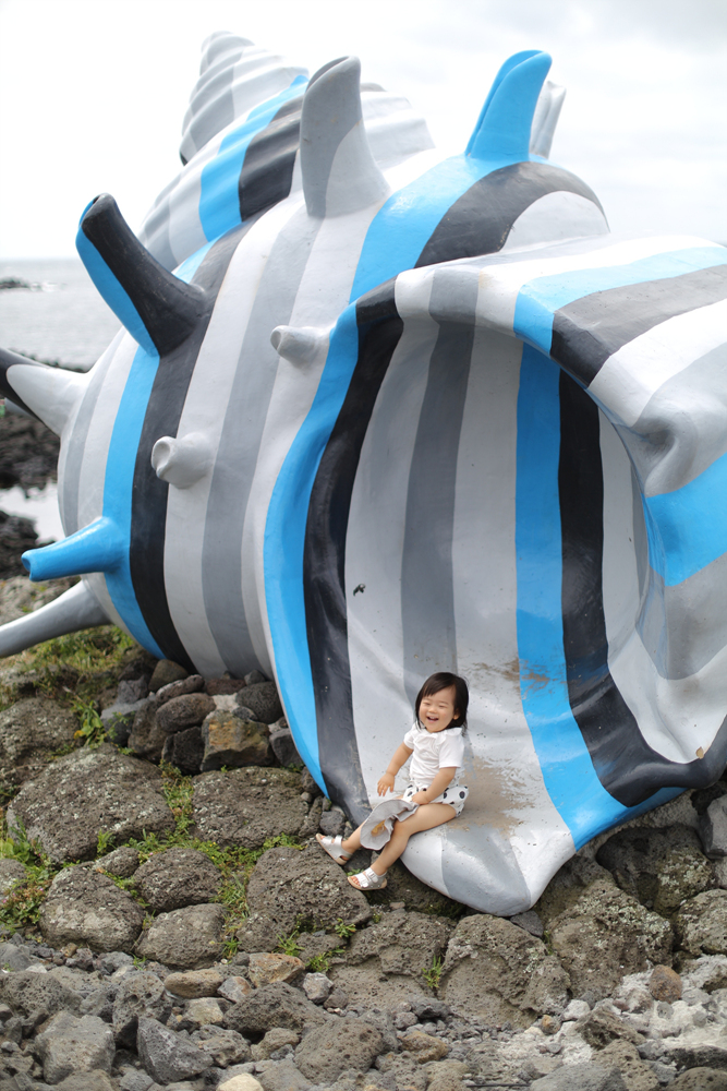 익숙하지 않은 잠자리에서 잘 자고 일어나서 밥도 잘 먹어주는 란이입니다 숙소는 제주시 근처의 작은 호텔이였고 방은 부모님은 더블룸 저희들과 처가어르신들은 트윈룸으로 잡았습니다 오늘은 제주의 우측으로 돌기로 했는데 해안도로를 구경하며~ 우도를 가기위해 성산포항으로 향했습니다