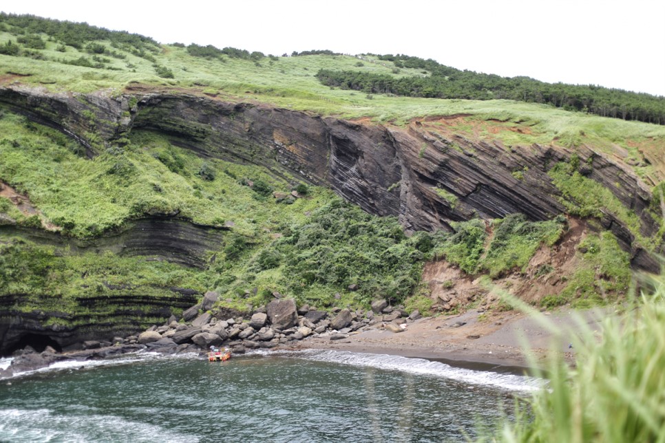 절벽의 모습은 이러했습니다 용암이 흘러내린 모습이 그대로 굳어 멋찐 풍경을 뿜어냈습니다