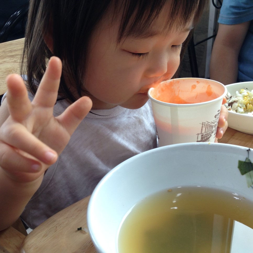 란이도 맛있게 밥을 먹었는데 성게 미역국을 싹 비웠습니다