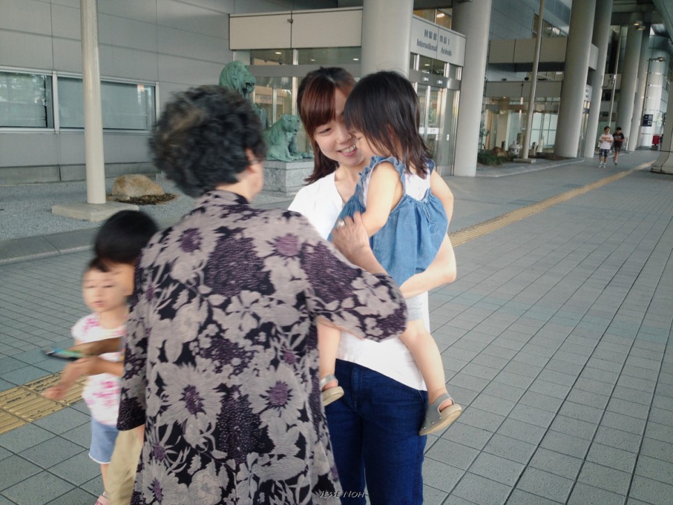 마중 나온 노리코 언니가족과 틀니 미요코상~ 머리 뒷쪽의 볼륨이 빵빵하신게 한국식 뽀글이 파마가 아주 제대로 먹힌 것 같습니다