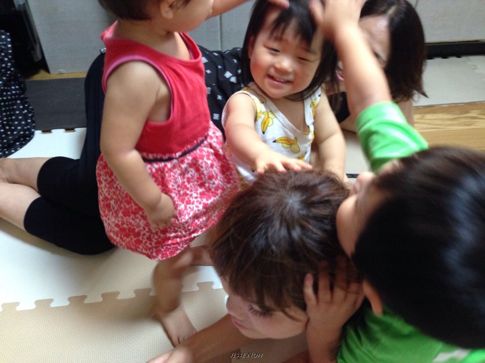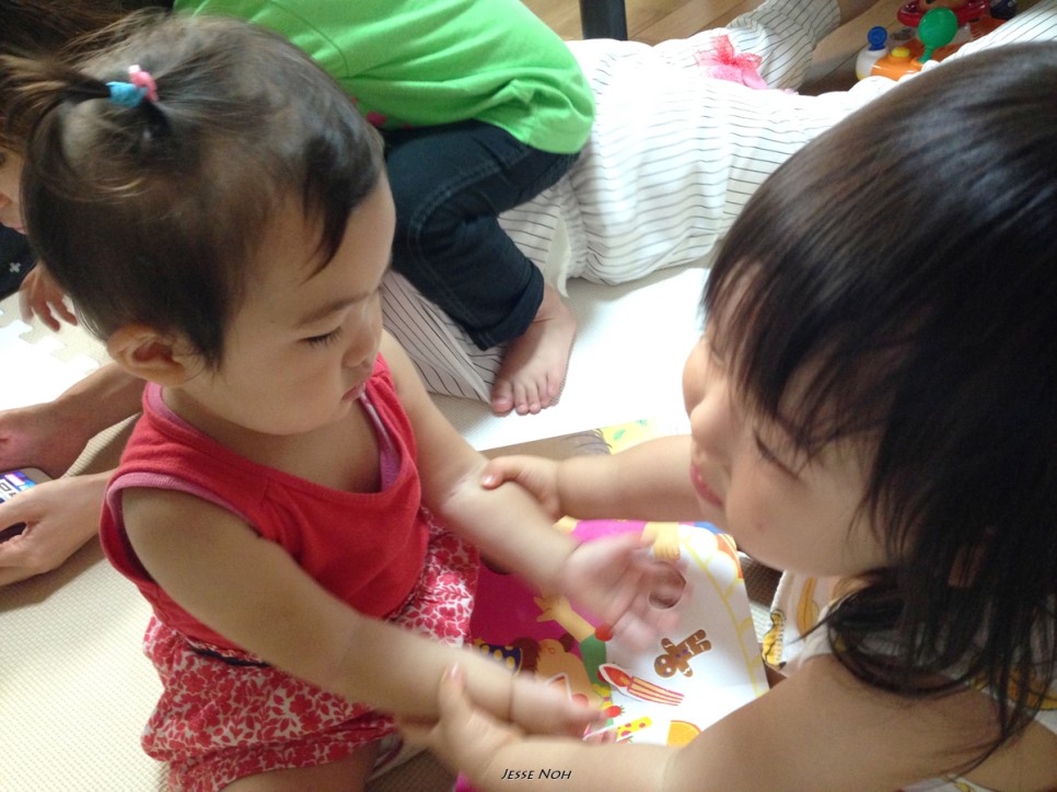 만나자 마자 서로 쓰다듬어주며 잘 어울려서 놉니다 이런 모습을 보면 아이를 한명 더 낳거나 일본에서 조카들하고 어울리게 해줘야 되나 이런 생각이 들곤 합니다