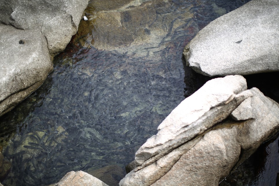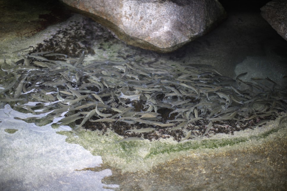 수만마리의 황어떼라고 합니다 갈매기들이 왜 잡아먹지 않을까 정말 신기했습니다