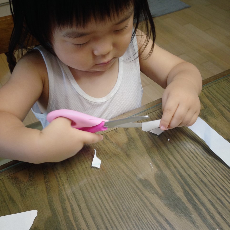 장난감 가위를 넘어 실제 가위로 가위질을 하는 란이