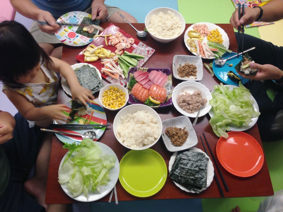 이건 한일부부 3부부가 모여서 같이 밥 먹었을 때 입니다 그녀들이 준비했던 음식은 스시마끼 - 회말이? 라고 합니다