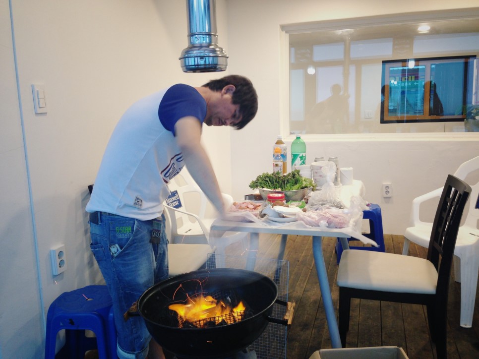 이건 오랫만에 제 사진인데 고성 펜션에서 고기굽는 모습이네요