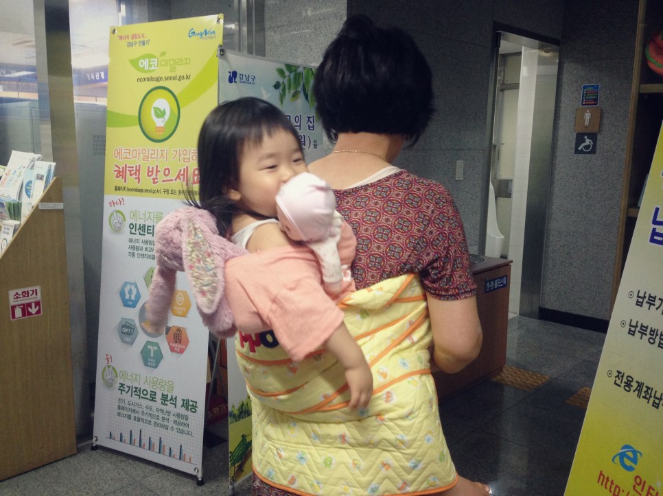 엄마 요가가 끝나길 기다려 마중 나간 란이와 할머니 그리고 란이의 애기