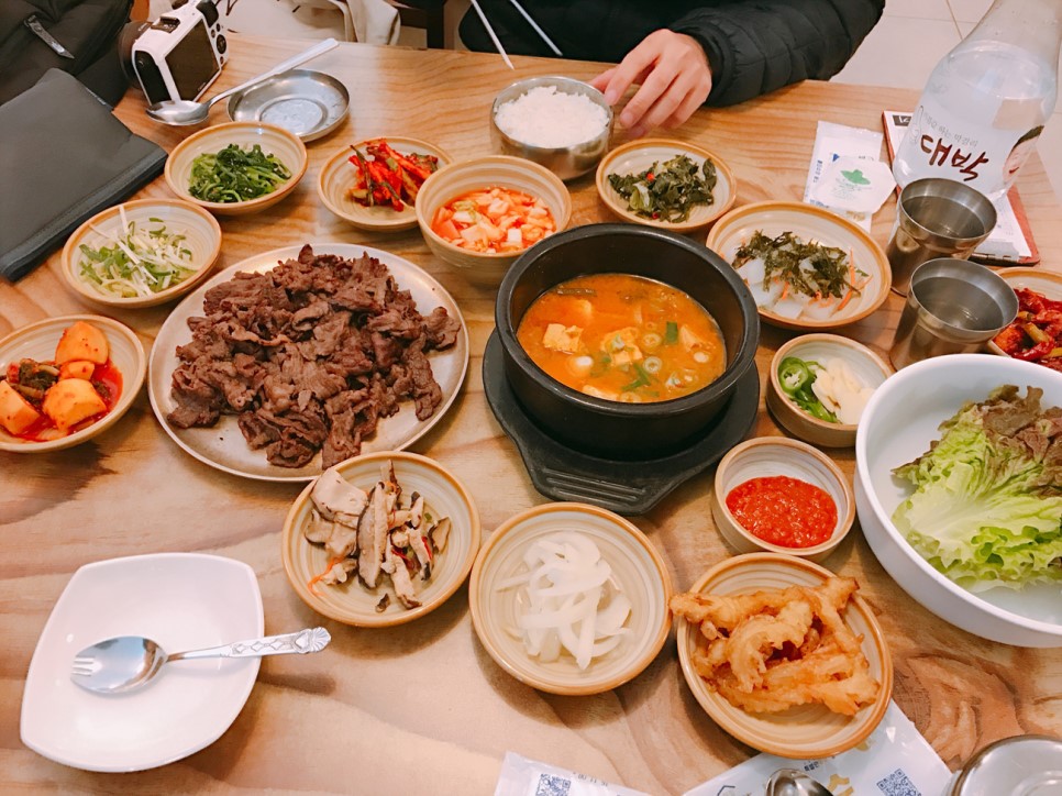 소 불고기에 비계가 거의 없는 제 취향에 딱 맞는 고기였습니다 숯불향기가 베인 맛있는 불고기 냠냠 식사를 하는 동안 다른 테이블에는 어떤 매뉴를 시키는지 살펴봤는데 옆 테이블에서 돼지불고기를 시켜서 먹는데 역시 비계가 없습니다 다음엔 돼지로 먹어보는걸로