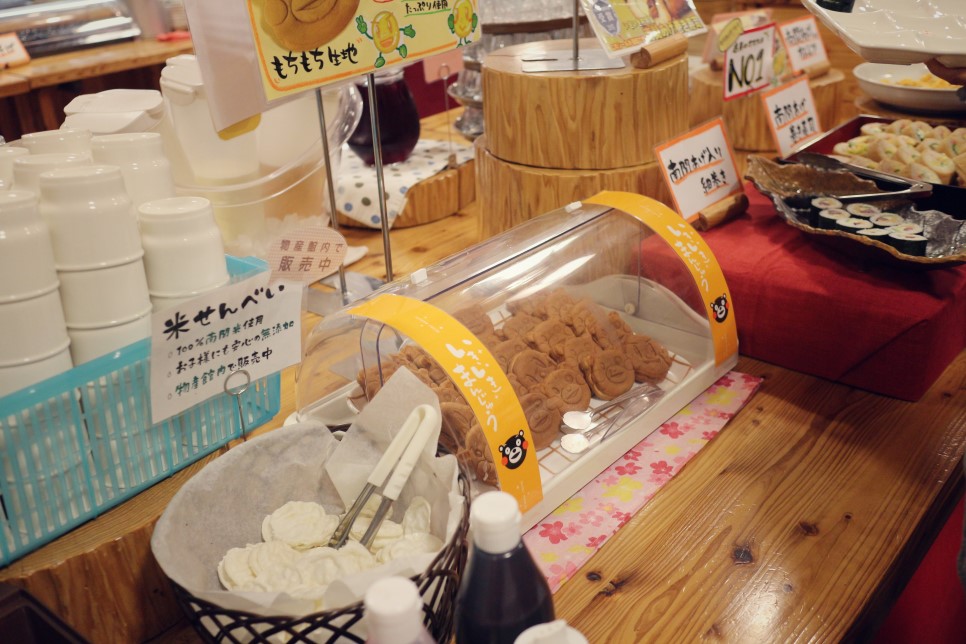 이키이키무라가 있는 곳은 행정구역상 쿠마모토현 타마나군이라서 쿠마모토의 상징 캐릭터인 쿠마몬으로 만든 빵이 있었습니다