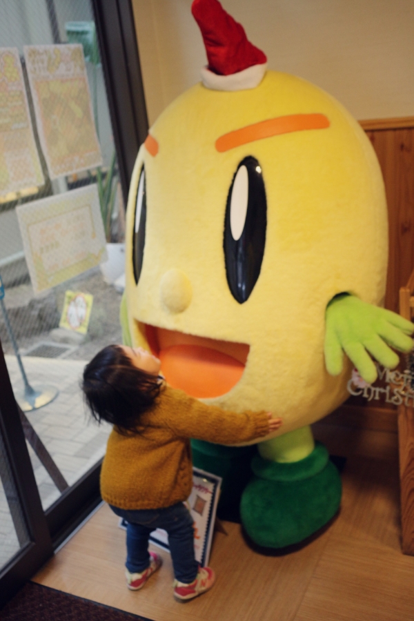 이키이키무라의 마스코트를 보고 좋아하는 란이