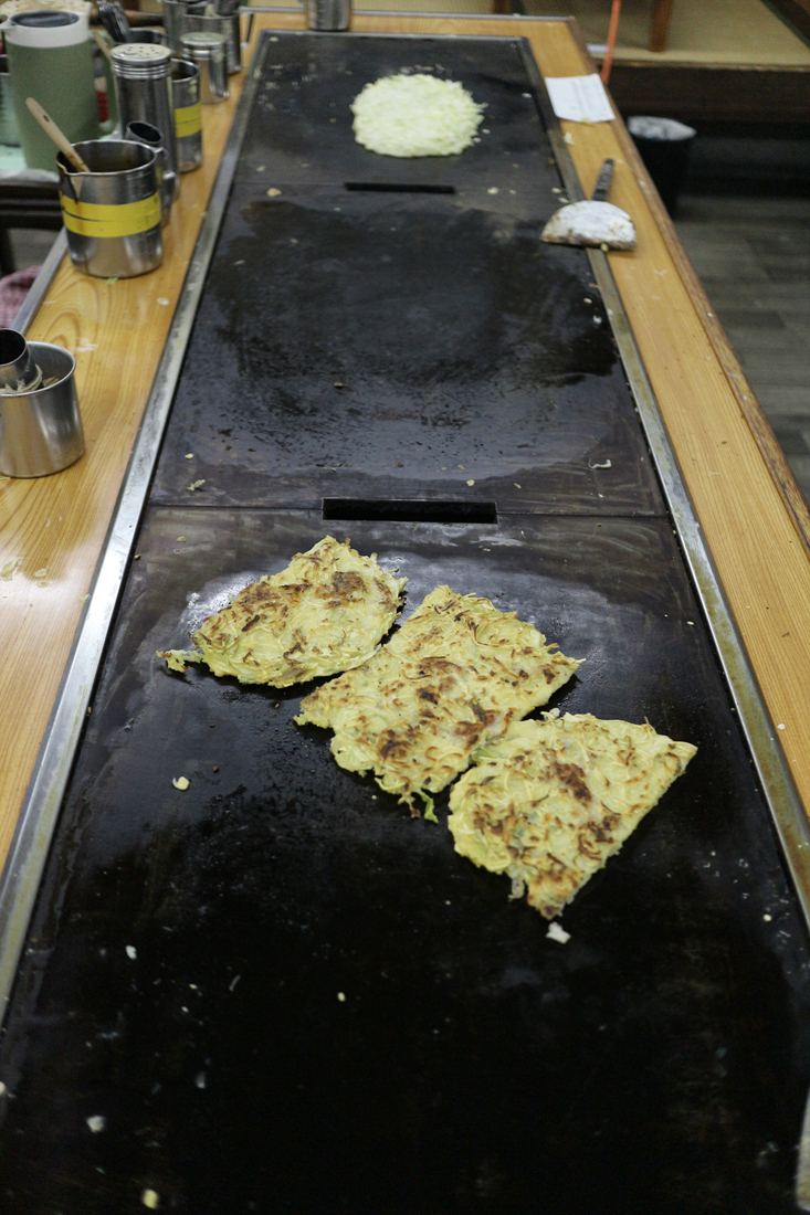 빈대떡처럼 반죽이 되었는 이 가게의 오코노미야키
