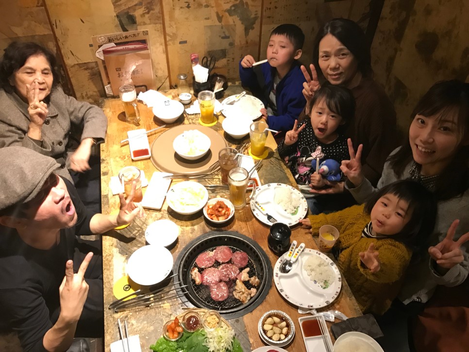 가족들과 기념사진 저희는 단품으로 시켰었지만 무제한으로 주문해서 먹을 수 있는 매뉴 = 타베호다이(食べ放題) 라고 써있는 음식점에 가면 일정 금액으로 모든 매뉴를 마음 것 먹을 수 있습니다 라고 쓰고 에미씨에게 확인해 봤더니 위의 스테이크 같은 매뉴는 안될꺼고 타베호다이 주문 가능 매뉴는 따로 있을거라고 합니다