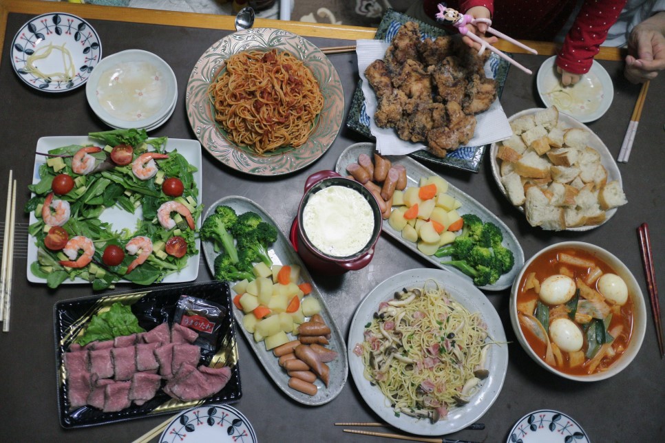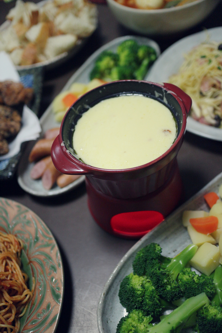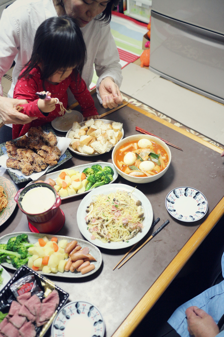 크리스마스 이브라 그런지 정말 많은 요리들이 준비되었습니다 에미씨와 저도 요리를 한 가지씩 했는데 에미씨는 치즈 퐁듀를 저는 떡볶이를 만들었습니다