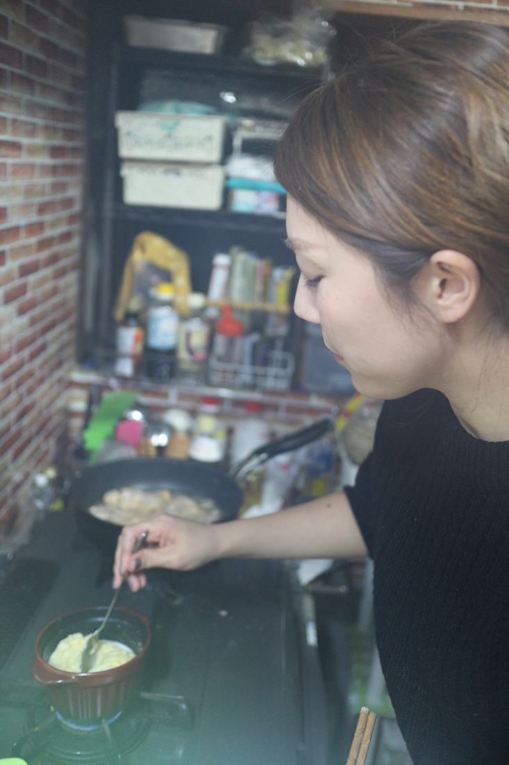 회심의 요리를 만드는 에미씨 치즈에 우유를 섞어서 만들어보고 있습니다만 뭔가 생각대로 잘 안되는 눈치입니다