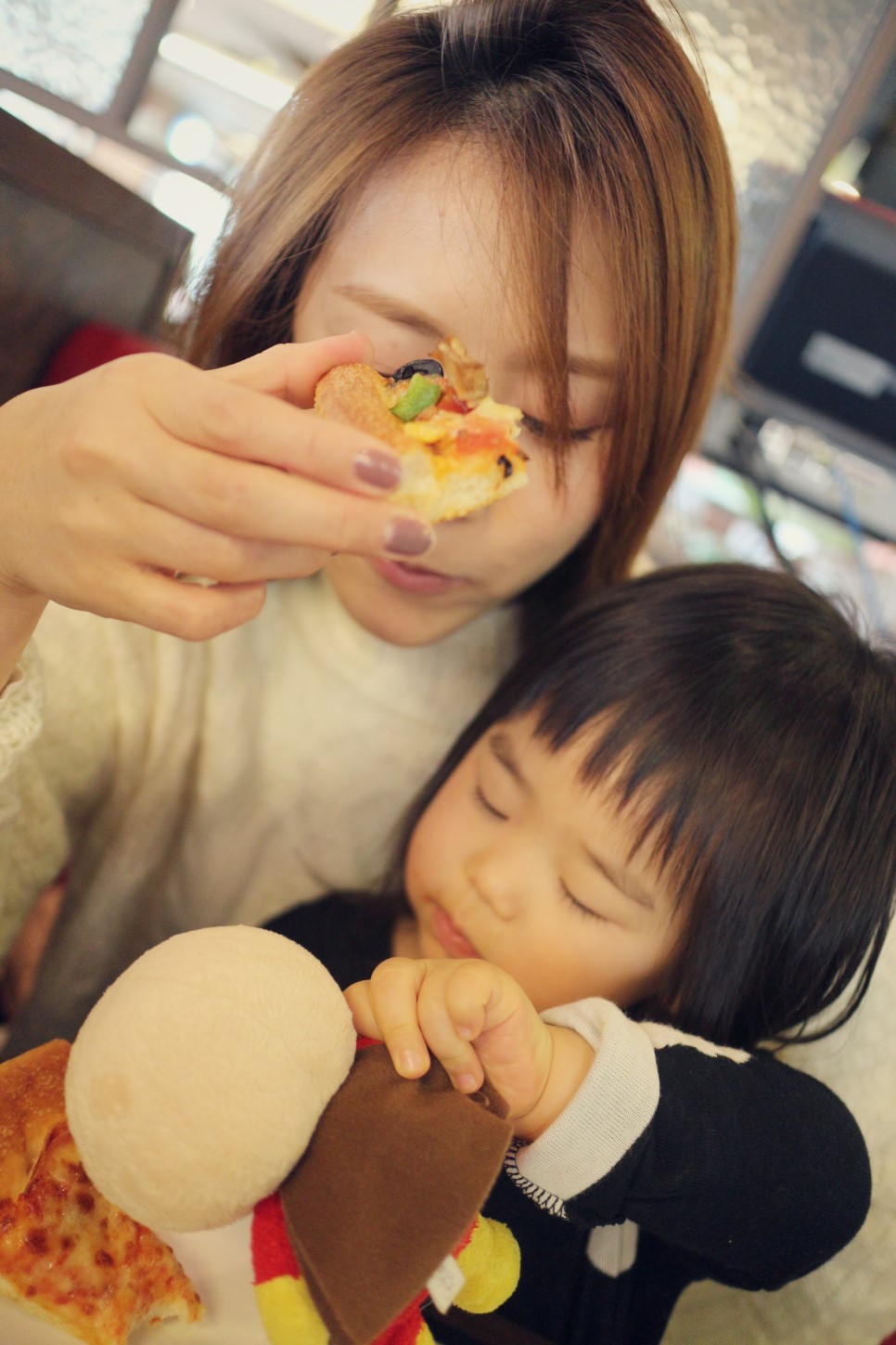 호빵맨에게 피자를 먹이는 란이