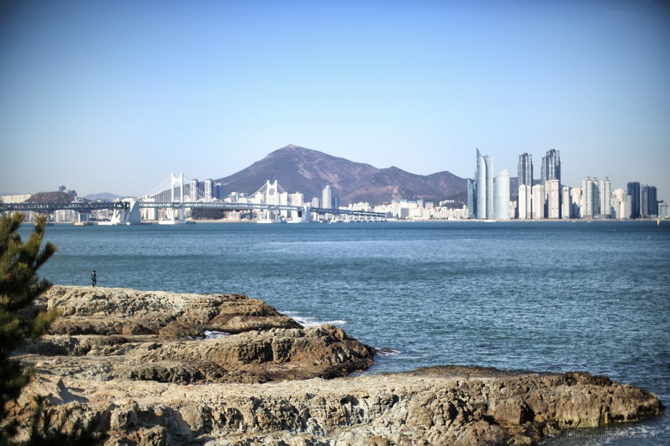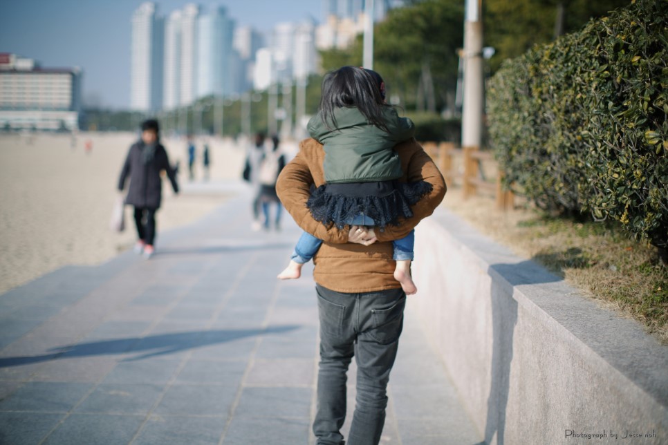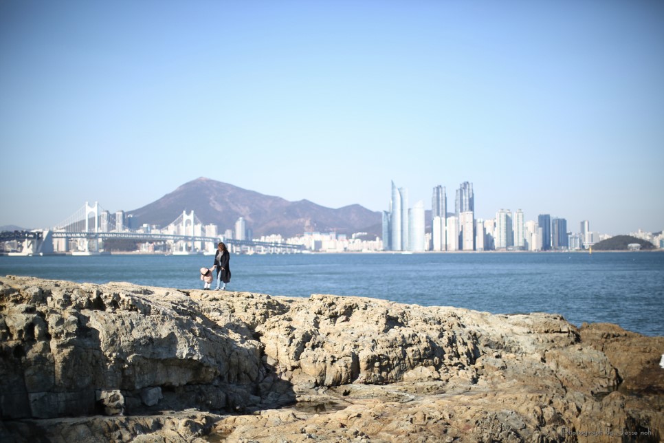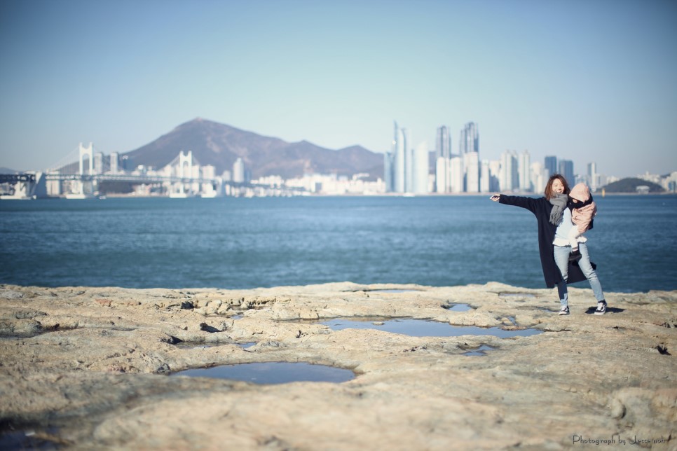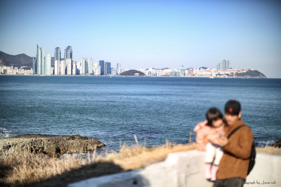 결국은 에미씨가 유모차를 가지고 내려오고 13.5 킬로의 란이는 제가 들쳐안고 내려왔습니다 그래도 몸관리를 하고 턱걸이 아령 운동을 해서 그런지 예전보다는 란이를 안아주기가 편해졌습니다 ^^ 사랑하는 가족들을 위해 아빠님들 몸 관리 합시다용~ 힘들게 내려온 만큼 이기대 공원의 풍경은 매우 아름다웠습니다 부산은 과거 몇 번 온적이 있었지만 처음으로 와 본 곳 첨엔 원망스러웠던 상진이에게 고마워지는 순간였습니다 뒤로 바다를 끼고 해운대가 보이는데 사진을 남기고 싶었습니다 그래서 에미씨에게 카메라를 주고 '란이와 한장 찍어줘!!" 라고 했습니다만 결과는 여러분도 예상 하셨으리라 생각합니다만