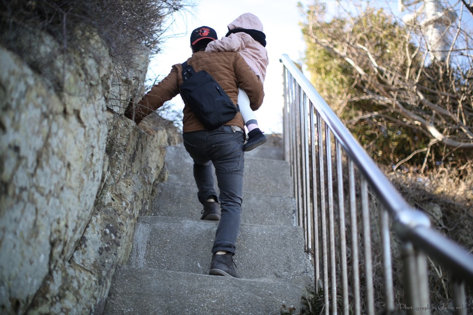 하체도 강해진 란이아빠는 란이를 안고도 가파른 계단을 아주 잘 오릅니다