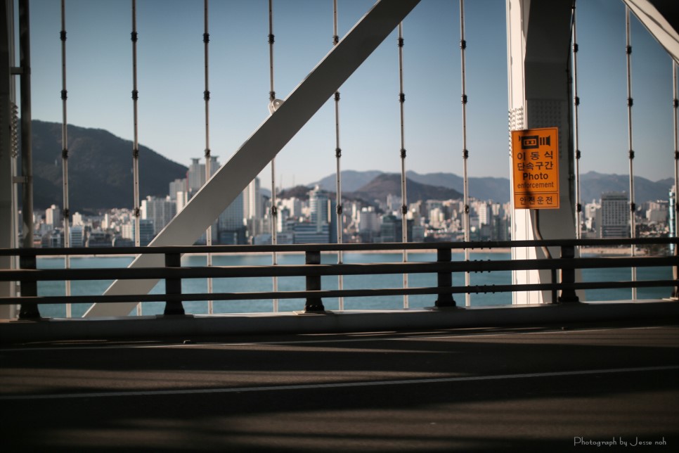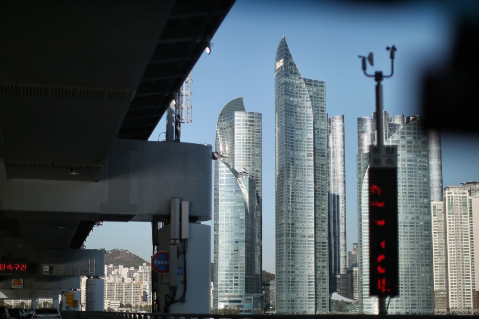 다리 이름은 모르겠지만 다리와 해운대 고층아파트들이 매우 이국적인 풍경을 보여줍니다