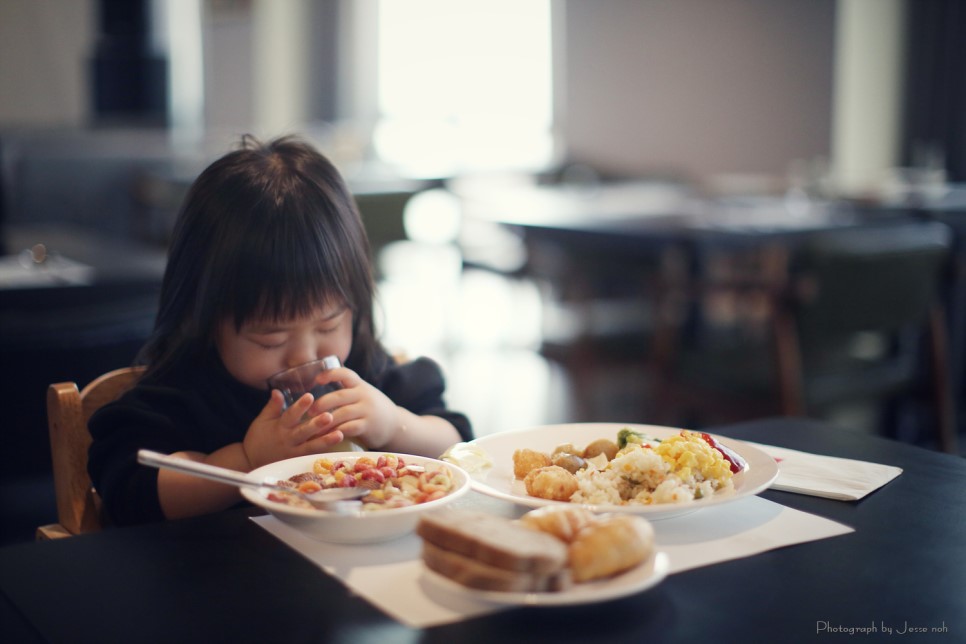 아침에 일어나서 조식을 먹으러 갑니다