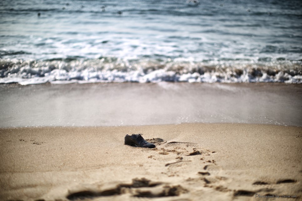 저렇게 걸으면 신발에 모래가 많이 들어갈텐데요~