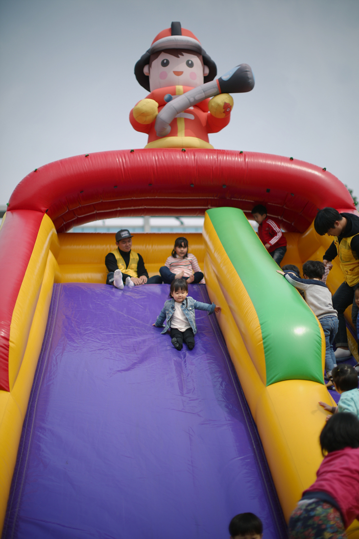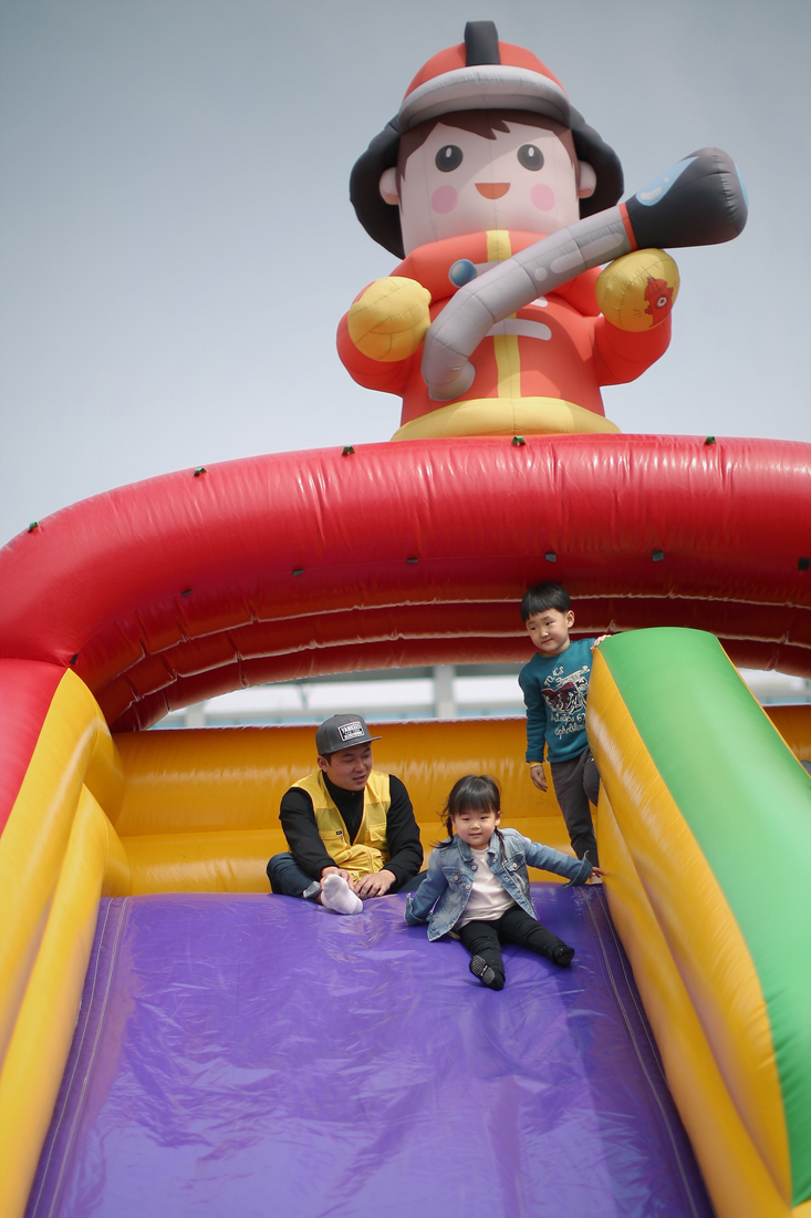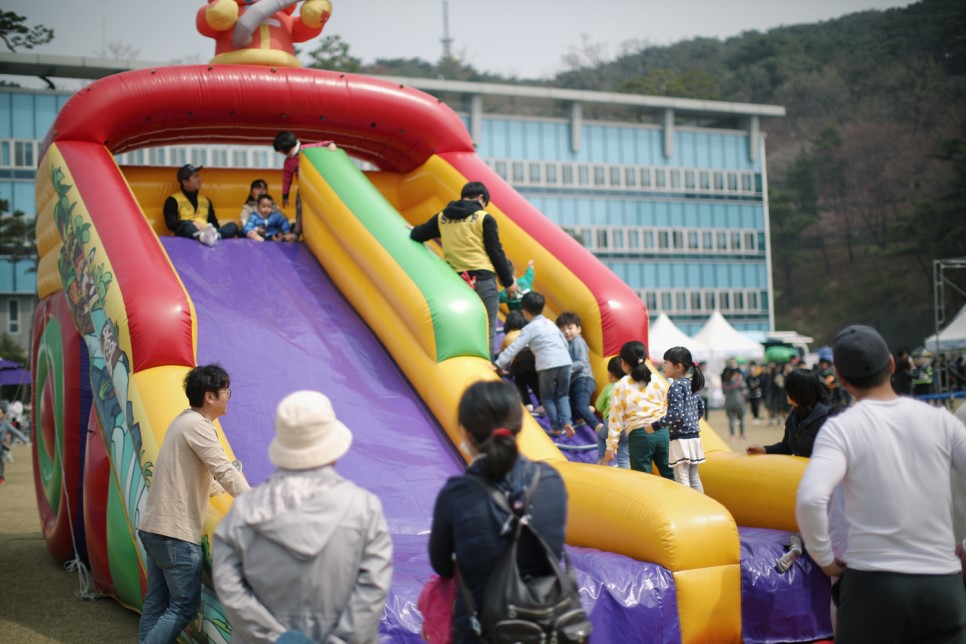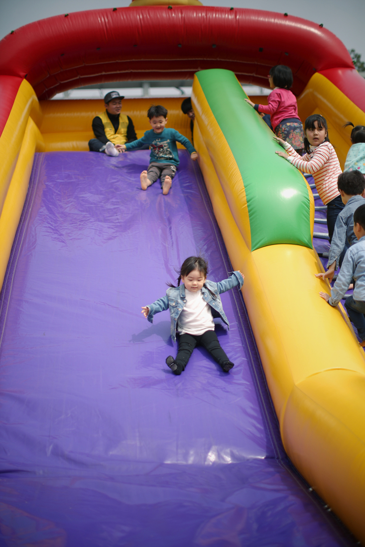 아이들이 미끄럼틀을 타는 동안