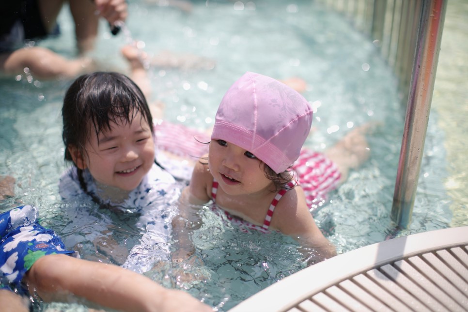 처갓집에서 가장 가까운 수영장인 오무타 시립수영장이 좋은 이유는 온 가족들이 함께 오기 편하다는 점이였습니다 둘째언니 가족도 왔고