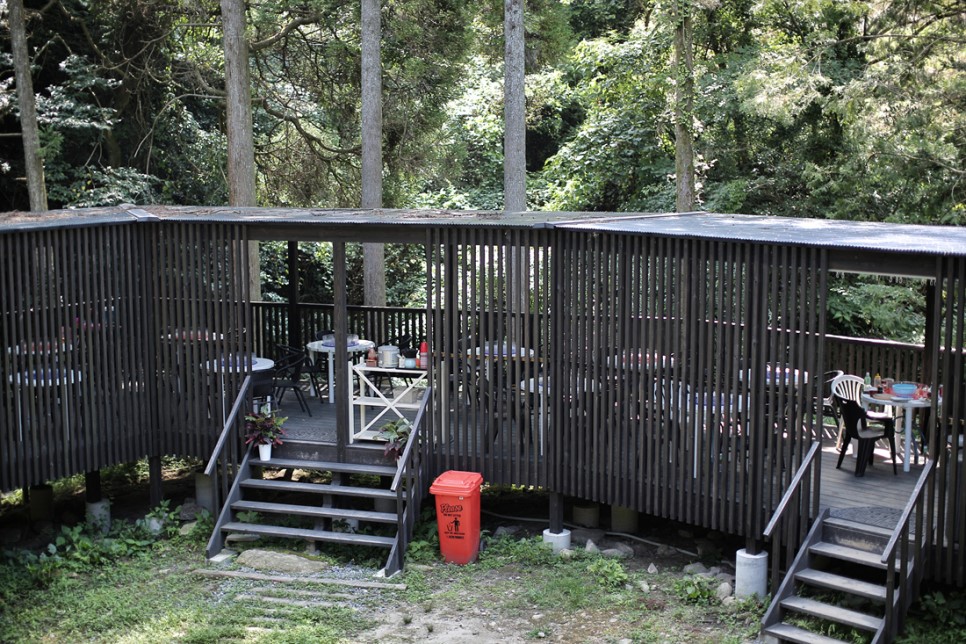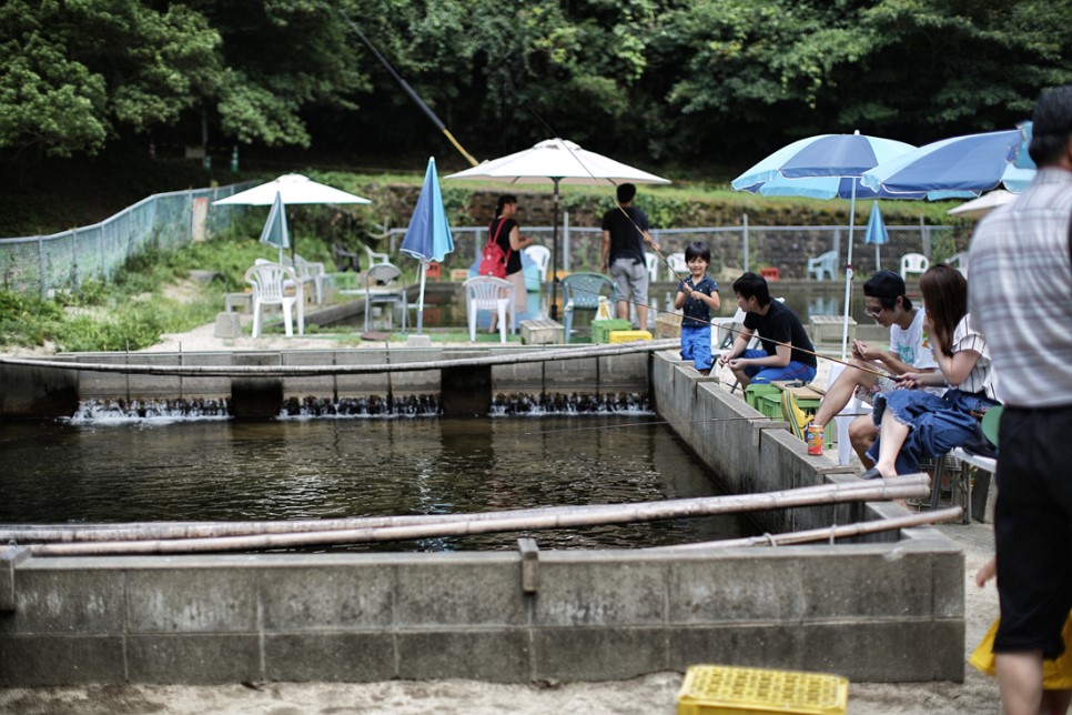그 옆에는 계곡 바로 앞에 이렇게 음식을 먹을 수 있는 식당 테이블이 있었습니다 이곳을 둘러본 후 낚시에 몰입해봅니다 그 결과는
