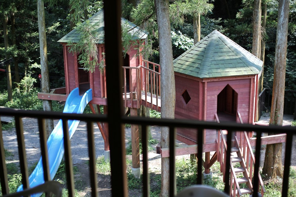 낚시터 뒷쪽 계곡 앞쪽으로는 아이들이 놀 수 있는 놀이터가 나무에 연결되어 만들어져 있었고