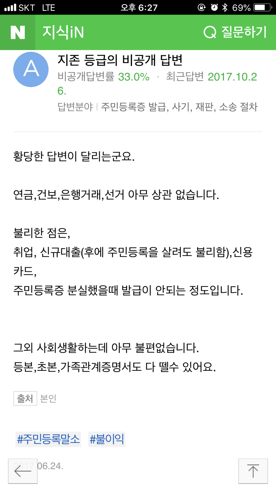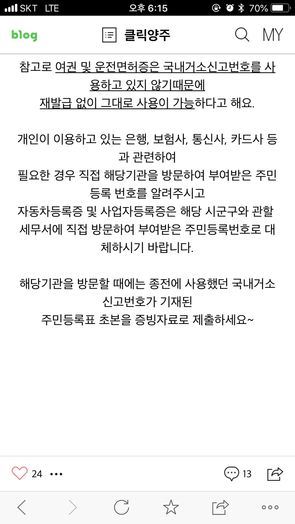 예전에는 말소가 되었었다는데요 지금은 그런게 없다고 합니다 휴~ 다행입니다 오늘 겪은 일들에 대한 결론 "더럽게 힘들고 복잡하지만 한 번만 하면 된다고 생각하니 할만하더이다!!"