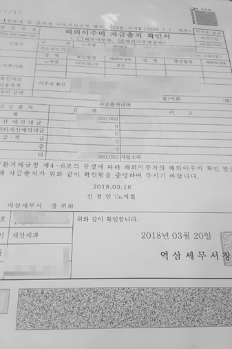![]() 일본으로 오기전에 만들어 놨던 해외이주비 자금출처 확인서