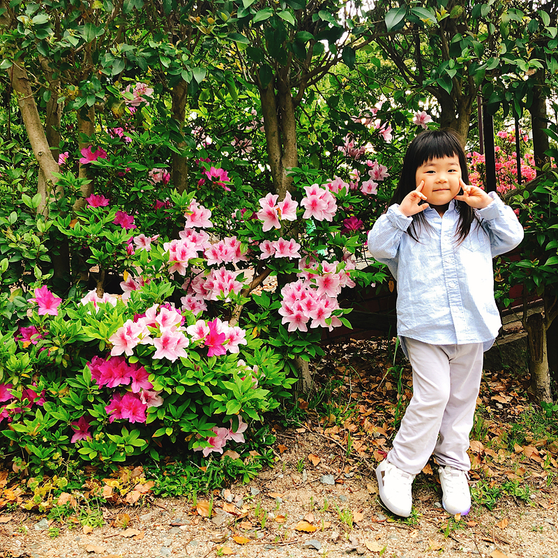 ![]() 철쭉이 피어있는 동물원 앞에서 란이와 함께